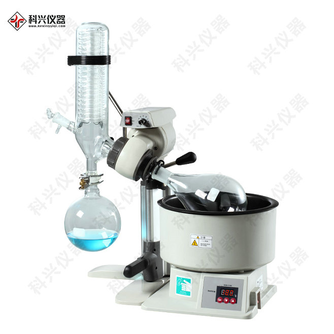 旋轉蒸發(fā)儀的根本原理就是減壓蒸餾,也就是在減壓情況下,當溶劑蒸餾時(shí),蒸餾燒瓶在接連滾動(dòng)。蒸餾燒瓶是一個(gè)帶有標準磨口接口的茄形或圓底燒瓶,經(jīng)過(guò)一高度回流蛇形冷凝管與減壓泵相連,回流冷凝管另一開(kāi)口與帶有磨口的接納燒瓶相連,用于接納被蒸騰的有機溶劑。在冷凝管與減壓泵之間有一三通活塞,當體系與大氣相通時(shí),能夠將蒸餾燒瓶,接液燒瓶取下,轉移溶劑,當體系與減壓泵相通時(shí),則體系應處于減壓狀況。使用時(shí),應先減壓,再開(kāi)動(dòng)電動(dòng)機滾動(dòng)蒸餾燒瓶,結束時(shí),應先停機,再通氣,以防蒸餾燒瓶在滾動(dòng)中掉落。作為蒸餾的熱源,常配有相應的恒溫水槽。經(jīng)過(guò)電子操控,使燒瓶在最適合速度下,恒速旋轉以增大蒸騰面積。經(jīng)過(guò)真空泵使蒸騰燒瓶處于負壓狀況。蒸騰燒瓶在旋轉同時(shí)置于水浴鍋中恒溫加熱,瓶?jì)热芤涸谪搲合略谛D燒瓶?jì)冗M(jìn)行加熱擴散蒸騰。旋轉蒸騰器體系能夠密封減壓至 400~600毫米汞柱;用加熱浴加熱蒸餾瓶中的溶劑,加熱溫度可接近該溶劑的沸點(diǎn);同時(shí)還可進(jìn)行旋轉,速度為50~160轉/分,使溶劑形成薄膜,增大蒸騰面積。此外,在高效冷卻器作用下,可將熱蒸氣迅速液化,加速蒸騰速率。