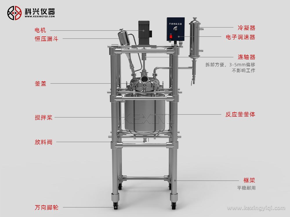 上??婆d儀器生產(chǎn)雙層不銹鋼反應釜主要用于制藥、化工、實(shí)驗室等機構的有機合成實(shí)驗室用中式設備,用于有機物合成實(shí)驗中,是生化制藥中的主要設備之一。