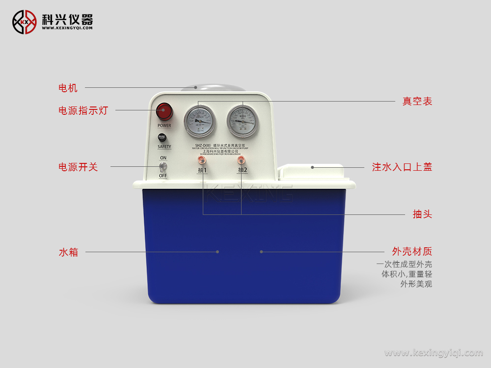 該泵是在循環(huán)水多用真空泵的基礎上,根據實(shí)驗室面積較小這一特點(diǎn),參照日本臺式泵,一次性成型外殼,縮小體積改進(jìn)而成,具有體積小,重量輕,外形美觀(guān)等特點(diǎn)。
