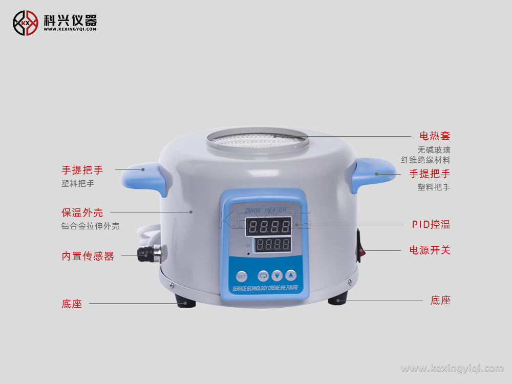 ZNHW型電熱套是用無(wú)堿玻璃纖維作絕緣材料,將Cr20Ni80合金絲簧裝置于其中,用硅酸鋁棉經(jīng)真空定型的半球形保溫體保溫,外殼一次性注塑成型,上蓋采用靜電噴塑工藝,由于采用球形加熱,可使容器受熱面積達到60%以上??販夭捎糜嬎銠C芯片做主控單元,采用多重數字濾波電路,模糊PID控制算法,具有測量精度高,沖溫小,單鍵輕觸操作,雙屏顯示,內、外熱電偶測溫,可控硅控制輸出,160-240V寬電壓電源,并有斷偶保護功能,具有升溫快、溫度高、操作簡(jiǎn)便、經(jīng)久耐用的特點(diǎn),是做準確控溫加熱試驗的理想儀器。